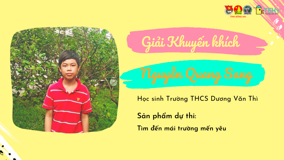 • Nguyễn Quang Sang – Trường THCS Dương Văn Thì, Huyện Nhơn Trạch