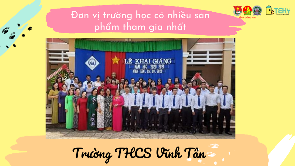 • Trường THCS Vĩnh Tân, Huyện Vĩnh Cửu với 156 sản phẩm dự thi.