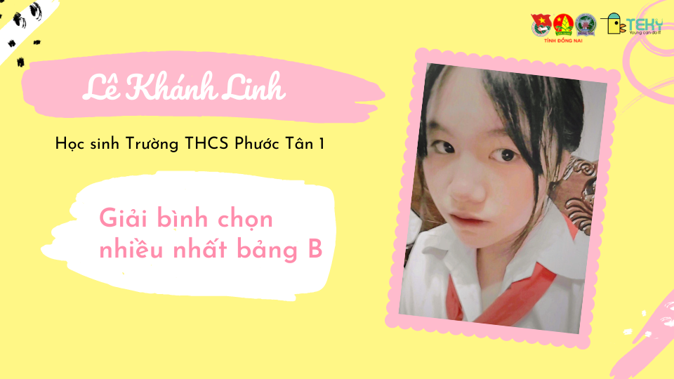 • Thí sinh Lê Khánh Linh – Trường THCS Phước Tân 1, Thành phố Biên Hòa với 351 lượt like