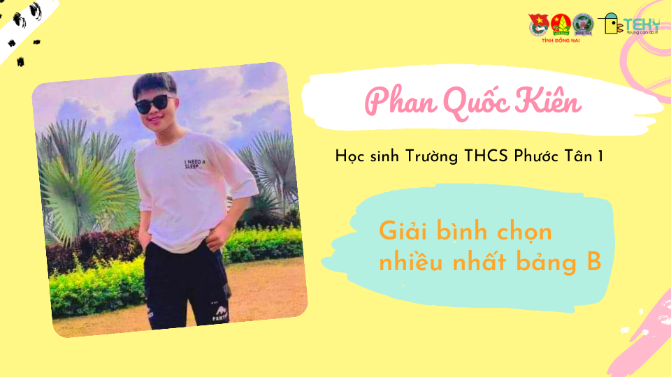 • Thí sinh Phan Quốc Kiên – Trường THCS Phước Tân 1, Thành phố Biên Hòa với 257 lượt like
