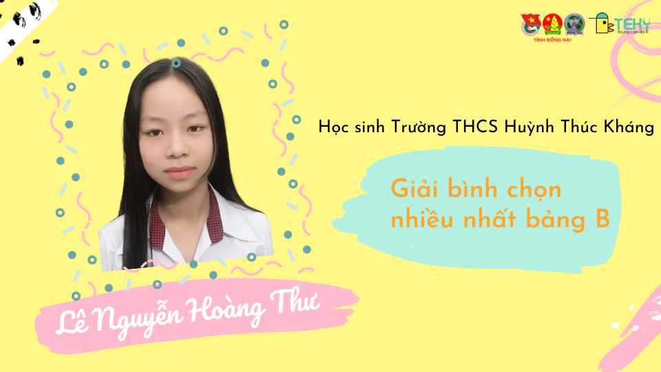 • Thí sinh Lê Nguyễn Hoàng Thư – Trường THCS Huỳnh Thúc Kháng, H. Trảng Bom với 163 lượt like