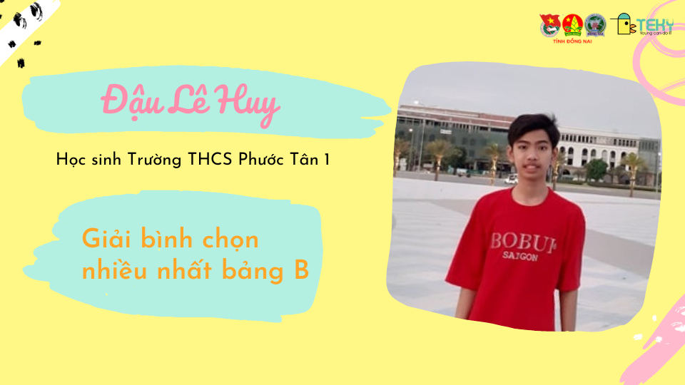 • Thí sinh Đậu Lê Huy – Trường THCS Phước Tân 1, Thành phố Biên Hòa với 149 lượt like